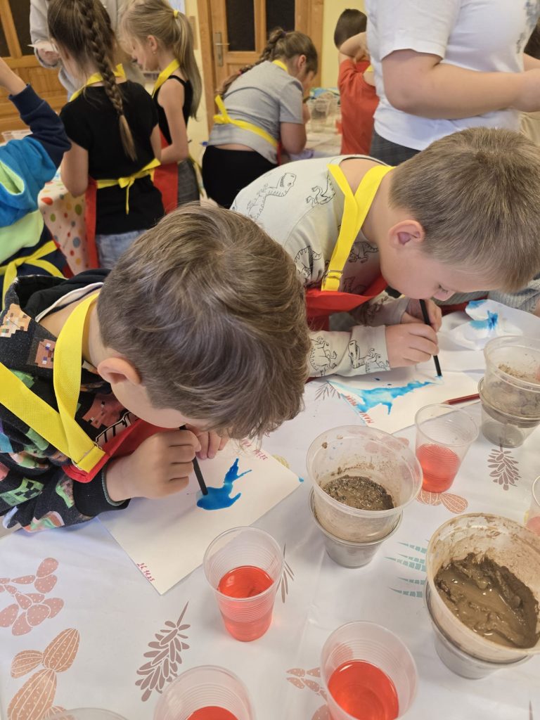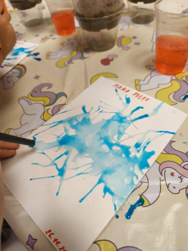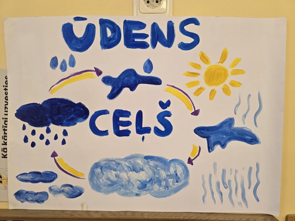 Nodarbības sākumā bērni kopā ar skolotāju pārrunāja un nostiprināja zināšanas par ūdens ciklu dabā. Tas palīdzēja saprast, ka peļķe ir svarīga ūdens cikla daļa. Katrs bērns radīja “savu peļķi” – ar salmiņa palīdzību izpūta nelielu ūdens lāsīti un vēroja, kā tā izplatās, maina formu un kustas.