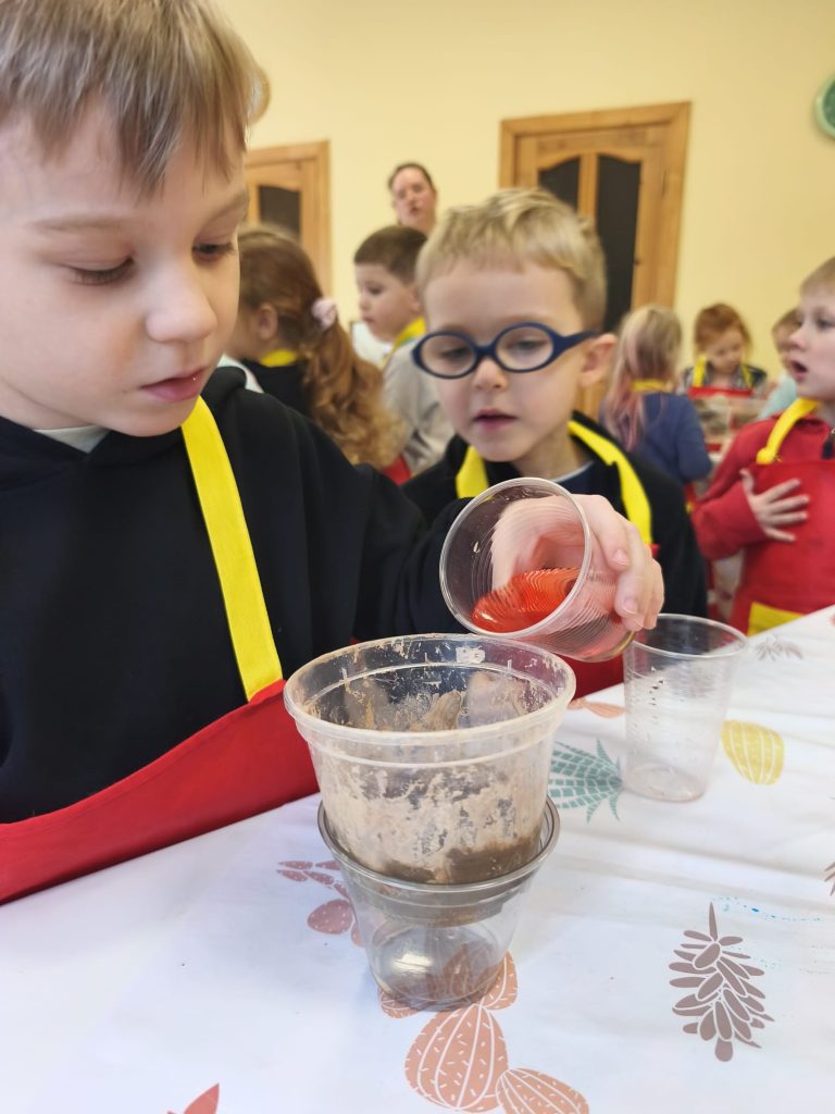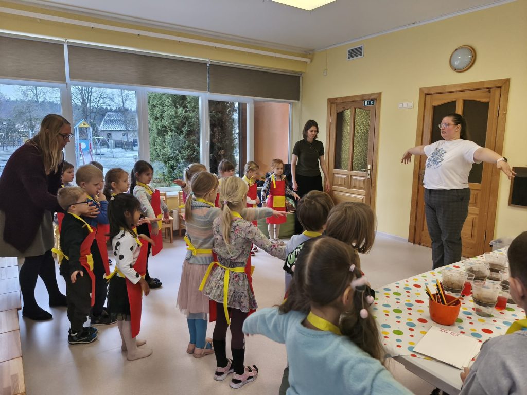 5–6 gadus vecie bērni no grupām “Mārītes”, “Spārītes” un “Taurenīši” piedalījās interesantā STEM rotaļnodarbībā “Peļķe uz ceļa – kāpēc un kā?”, ko vadīja skolotāja Sintija Geidāne. Nodarbības mērķis bija palīdzēt bērniem saprast, kā rodas peļķes un kāpēc tās dažās vietās izzūd ātri, bet citās saglabājas ilgāk.